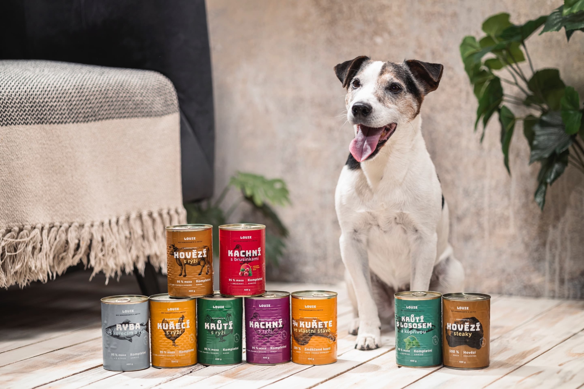 Tak, ako keď pes uloví sliepku alebo vlk uloví ovcu a skonzumuje ju celú, vrátane kostí a obsahu tráviaceho traktu (čím získa aj malú časť rastlinnej zložky do svojho jedálnička), tak aj Louie vymýšľa receptúry svojich kompletných mäsových konzerv pre členov svojej svorky tak, aby bol obsah konzerv čo najpodobnejší ulovenému zvieraťu!