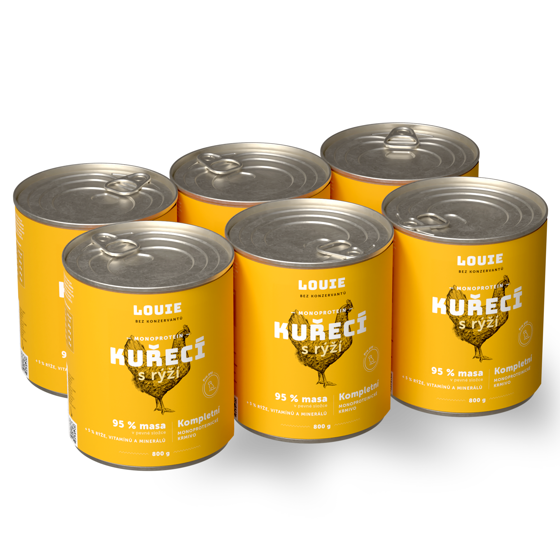 95 % šťavnatého a voňavého MASA v pevnej zložke a 5 % Louieho mixu rastlinnej zložky, vitamínov a minerálov v kompletných krmivách Louie perfektne napodobňuje bylinožravca, ktorého by psovitá šelma v prírode ulovila a zožrala.