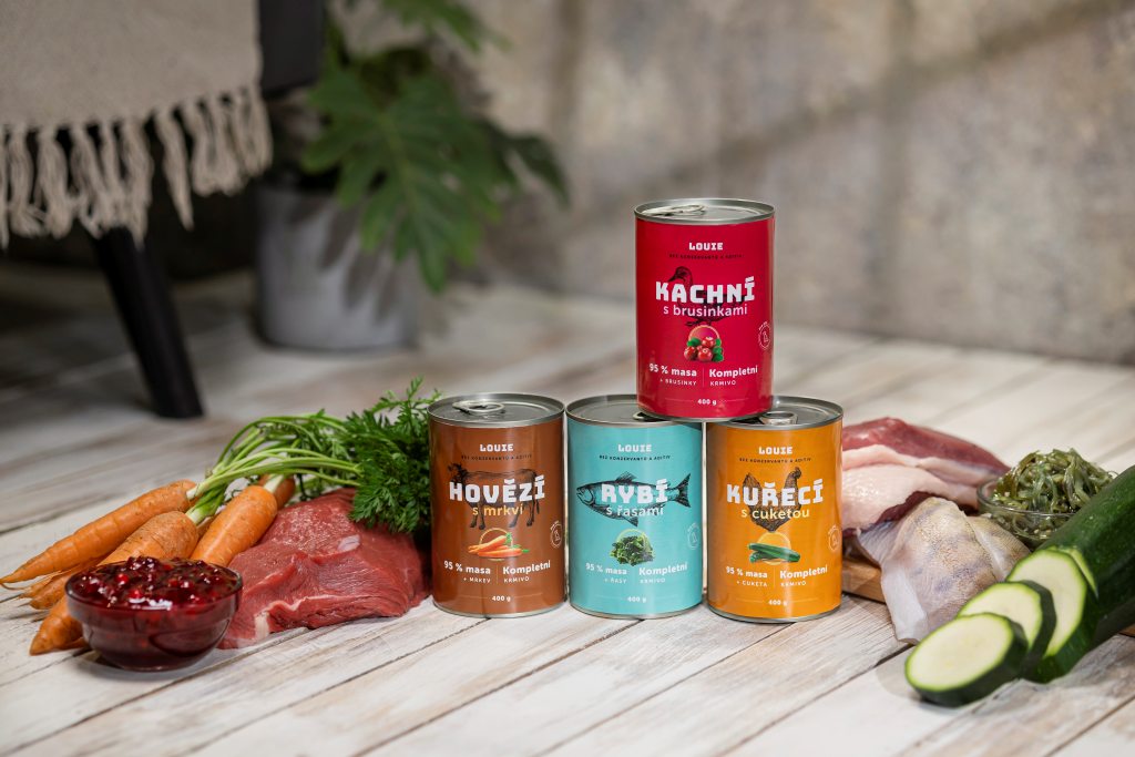 Tak, ako keď pes uloví sliepku alebo vlk uloví ovcu a skonzumuje ju celú, vrátane kostí a obsahu tráviaceho traktu (čím získa aj malú časť rastlinnej zložky do svojho jedálnička), tak aj Louie vymýšľa receptúry svojich kompletných mäsových konzerv pre členov svojej svorky tak, aby bol obsah konzerv čo najpodobnejší ulovenému zvieraťu!