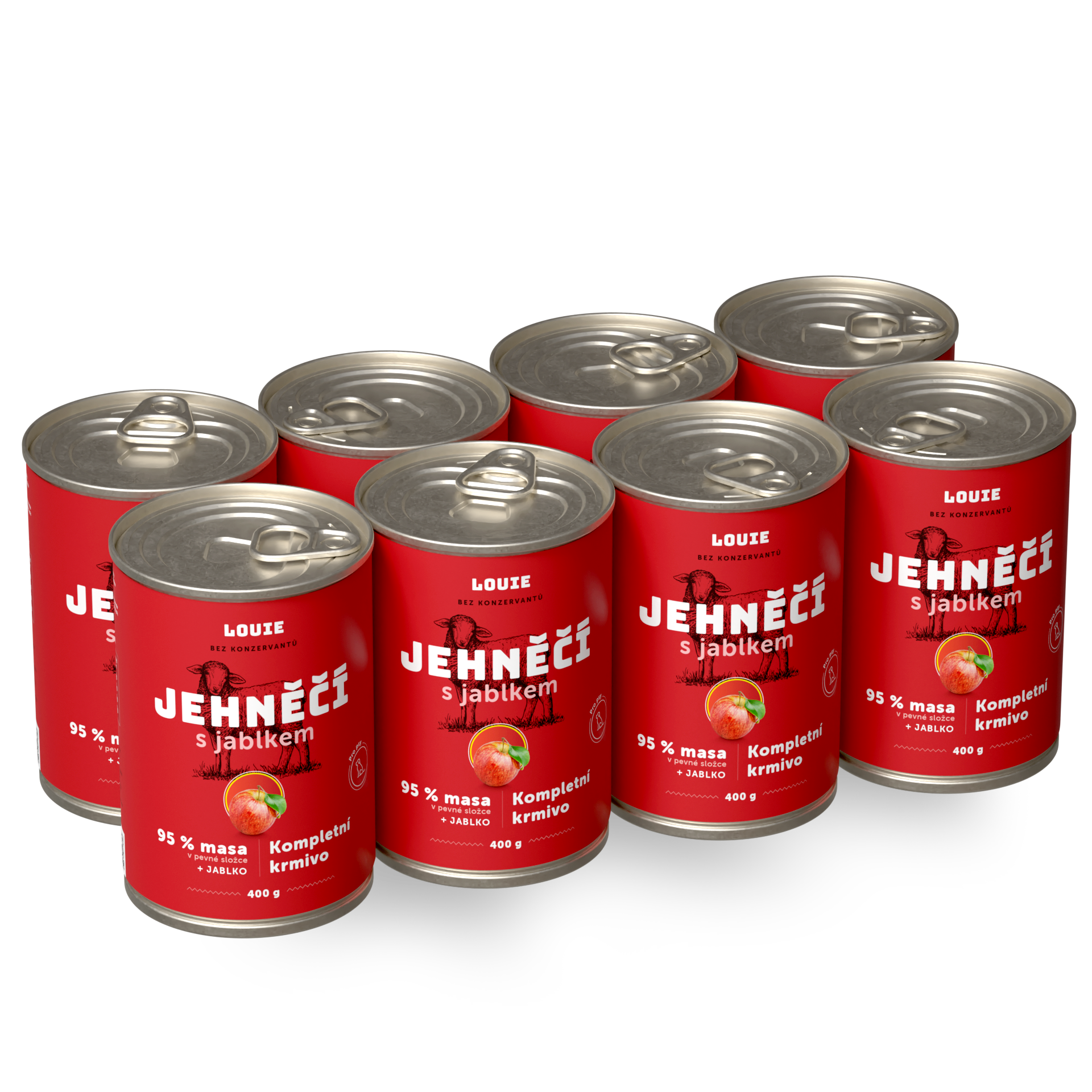 Šťavnaté konzervy obsahujú 95% mletého jahňacieho mäsa v pevnej zložke. Okrem mäsa sa v konzerve nachádza 5% jablká, minerálov a vitamínov a zmäkčené jahňacie kosti, ktoré sú prírodným zdrojom vápnika a fosforu. Jablko sa postará o vstrebanie šťavy, ktorú mäso počas sterilizácie uvoľní, dodá tvojmu maznáčikovi potrebné živiny a uľahčí trávenie – takže sa nemusíš báť, že budete po sviatočnej večeri behať na prechádzky častejšie ako obvykle.