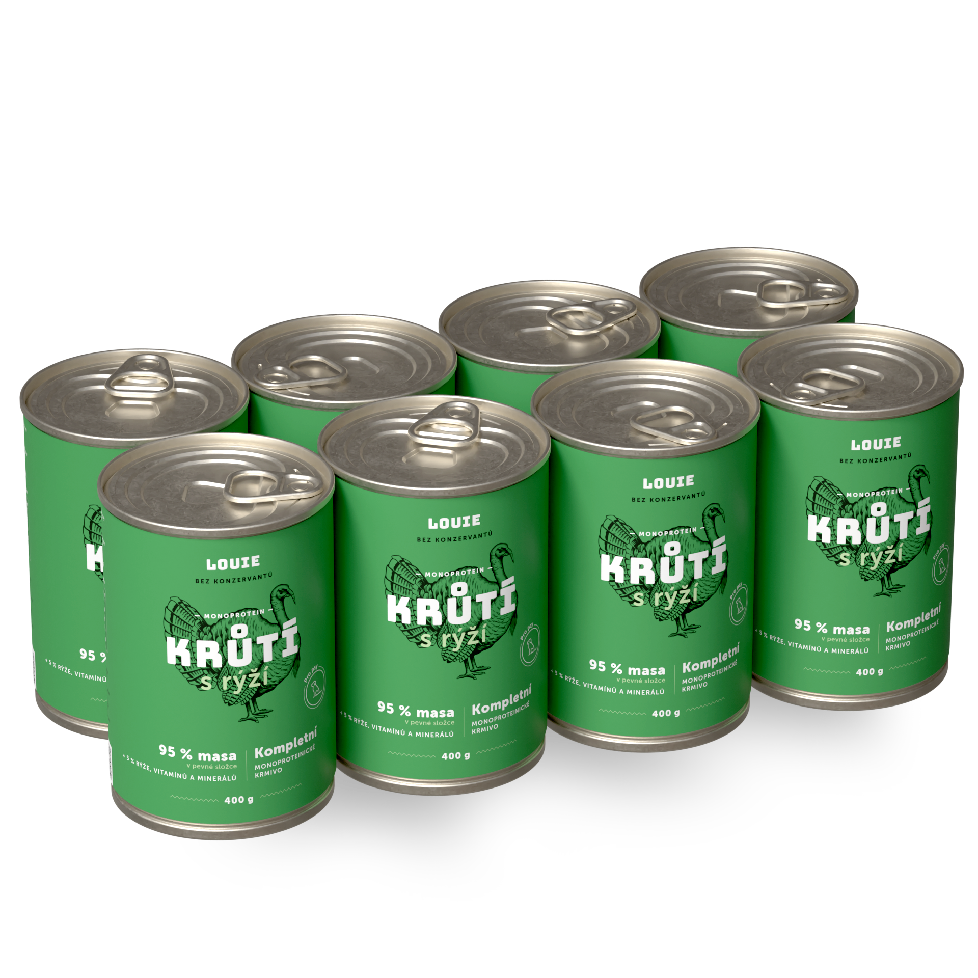 95 % šťavnatého a voňavého MASA v pevnej zložke a 5 % Louieho mixu rastlinnej zložky, vitamínov a minerálov v kompletných krmivách Louie perfektne napodobňuje bylinožravca, ktorého by psovitá šelma v prírode ulovila a zožrala.