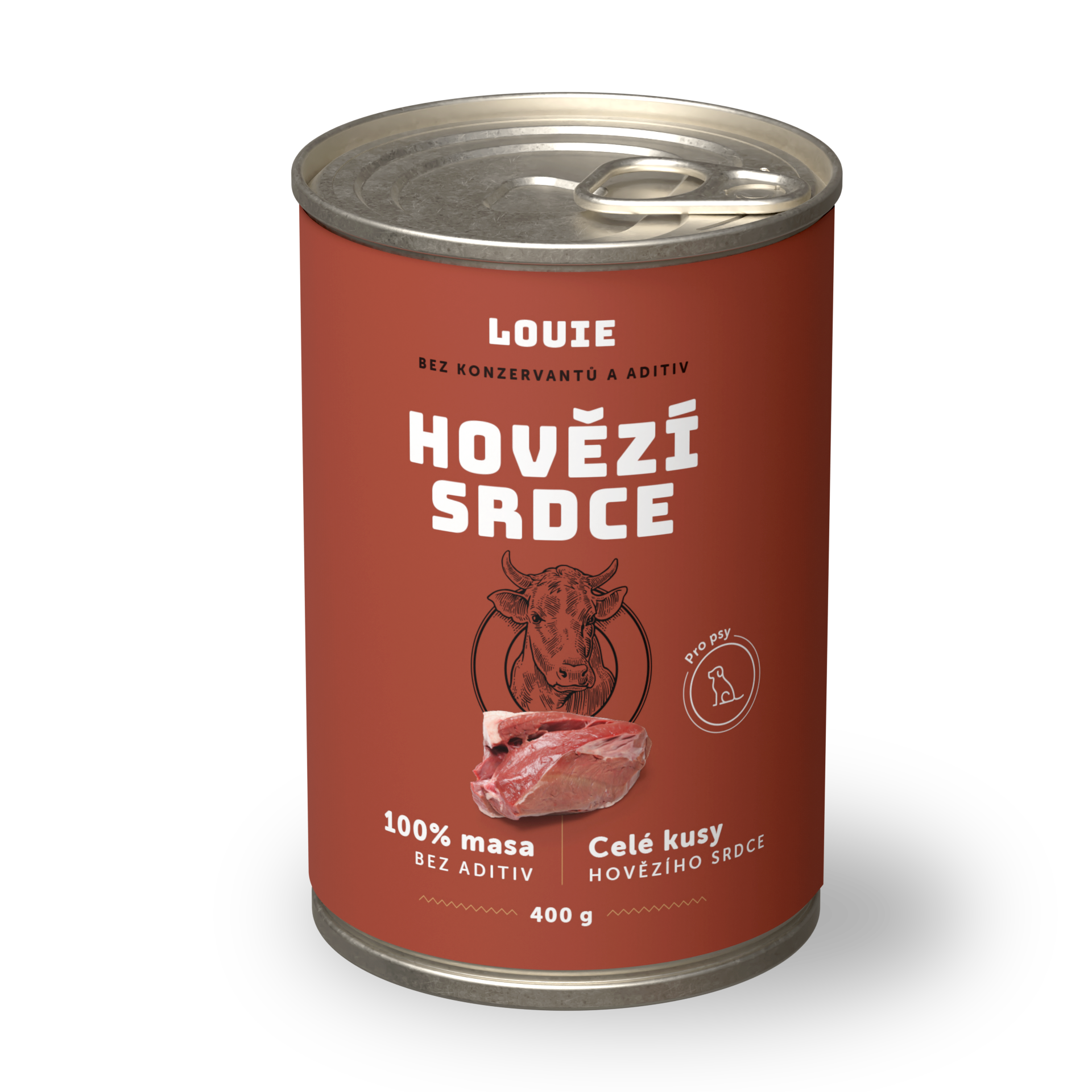 Šťavnatá konzerva obsahuje hovädzie srdce vo vlastnej šťave.