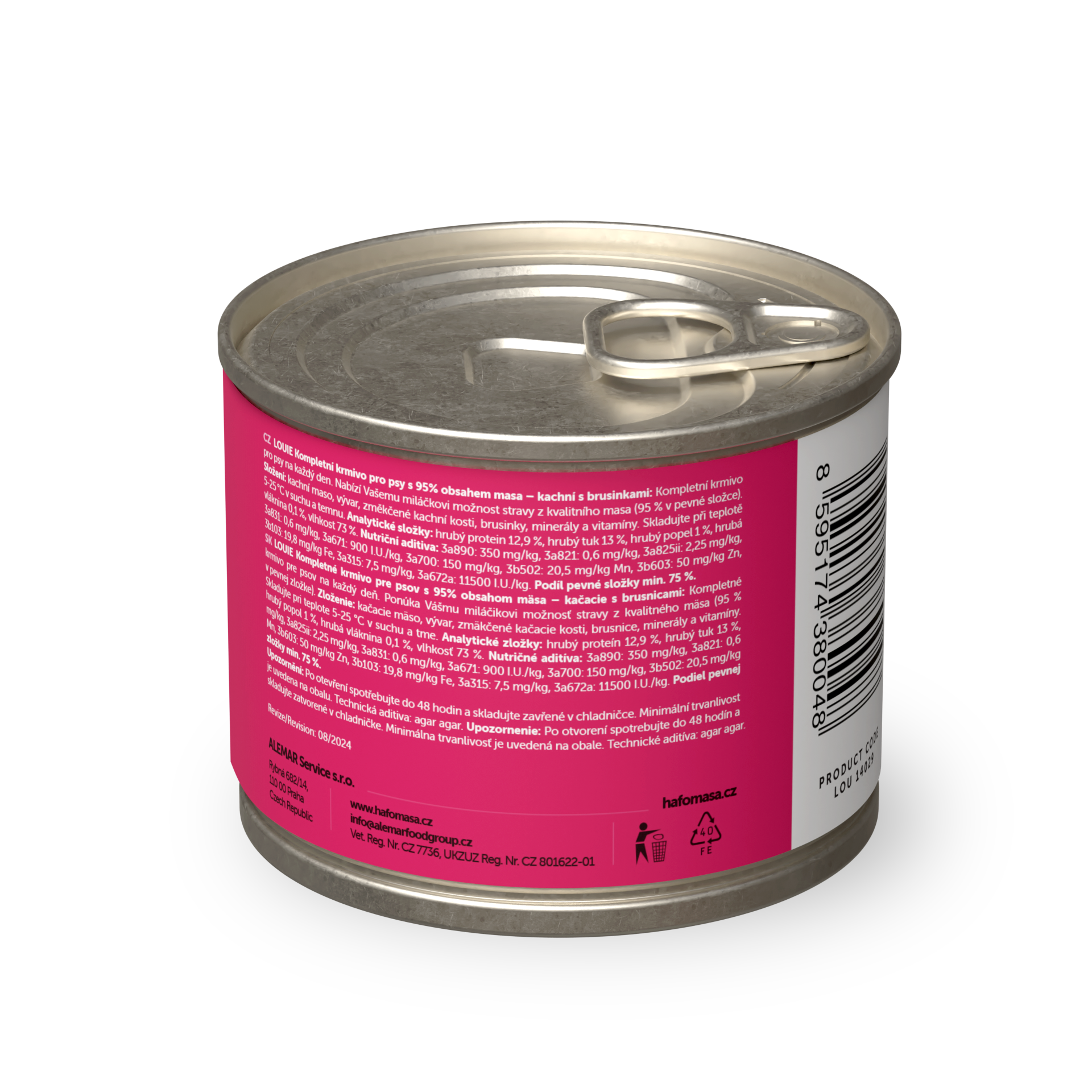 95 % šťavnatého a voňavého MASA v pevnej zložke a 5 % Louieho mixu rastlinnej zložky, vitamínov a minerálov v kompletných krmivách Louie perfektne napodobňuje bylinožravca, ktorého by psovitá šelma v prírode ulovila a zožrala.