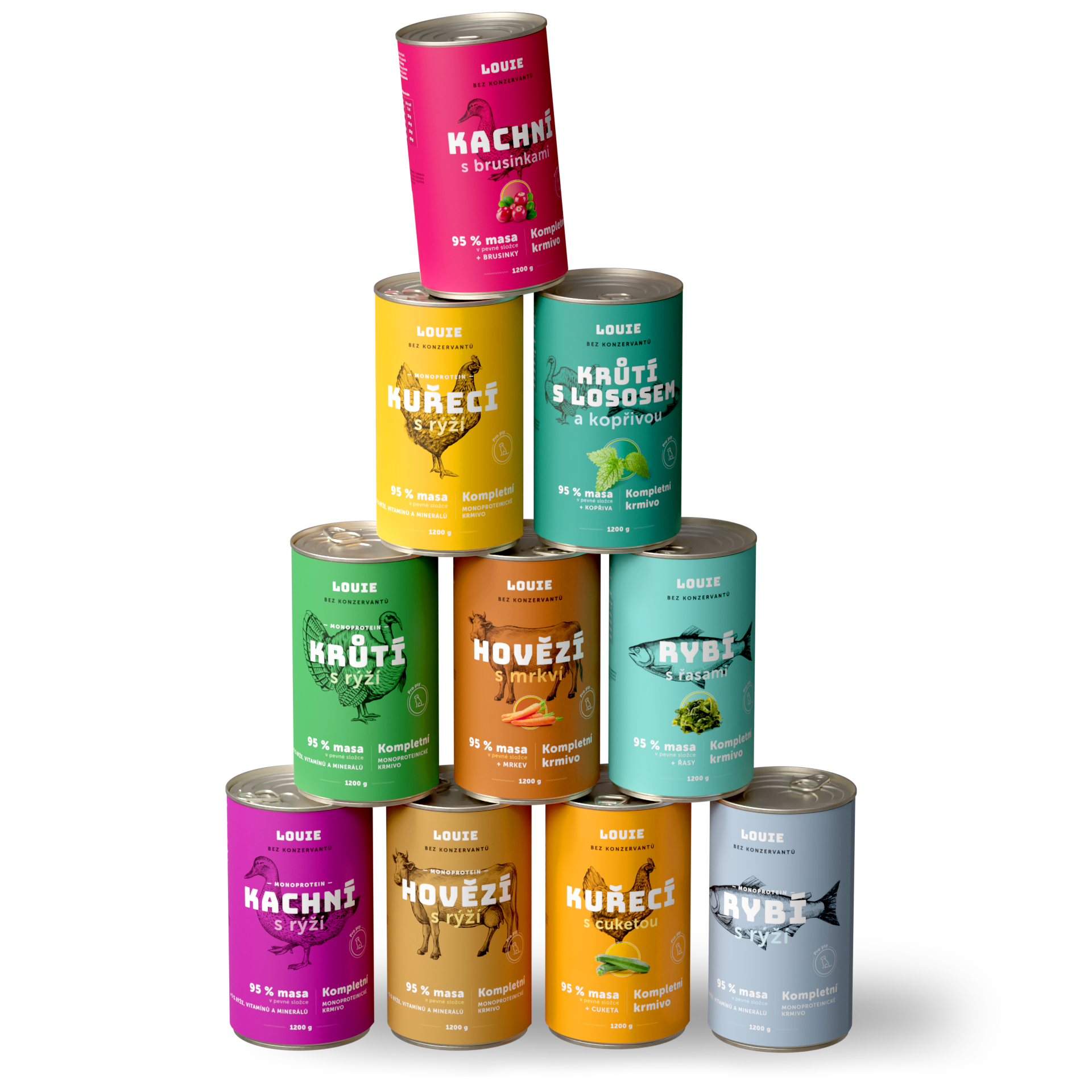 Stále premýšľaš, ktorú z Louieho konzerv ochutnať ako prvú? V balíčku nájdeš mix 10 konzerv, ktoré obsahujú 95 % mäsa v pevnej zložke a 5 % rastlinnej zložky, vitamínov a minerálov.
