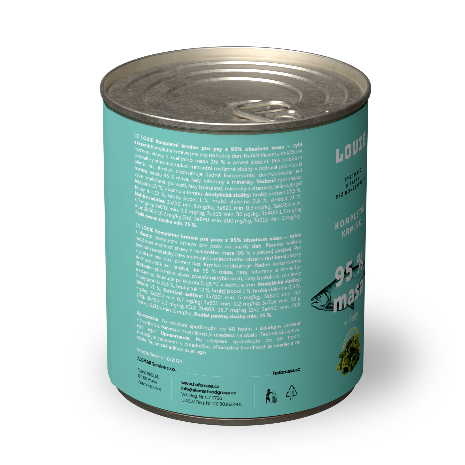 95 % šťavnatého a voňavého MASA v pevnej zložke a 5 % Louieho mixu rastlinnej zložky, vitamínov a minerálov v kompletných krmivách Louie perfektne napodobňuje bylinožravca, ktorého by psovitá šelma v prírode ulovila a zožrala.