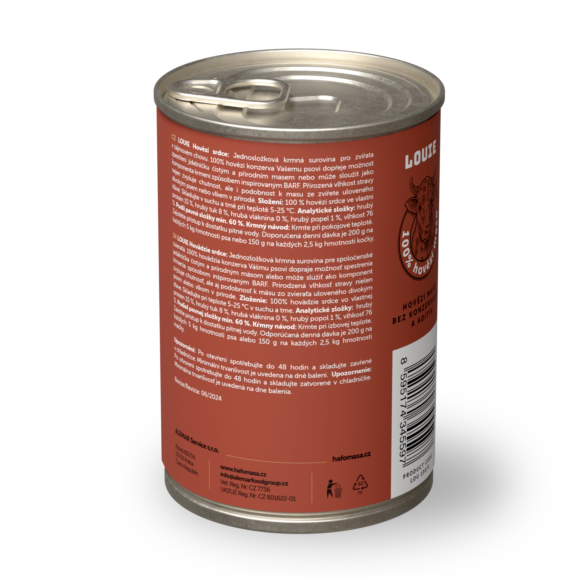 95 % šťavnatého a voňavého MASA v pevnej zložke a 5 % Louieho mixu rastlinnej zložky, vitamínov a minerálov v kompletných krmivách Louie perfektne napodobňuje bylinožravca, ktorého by psovitá šelma v prírode ulovila a zožrala.