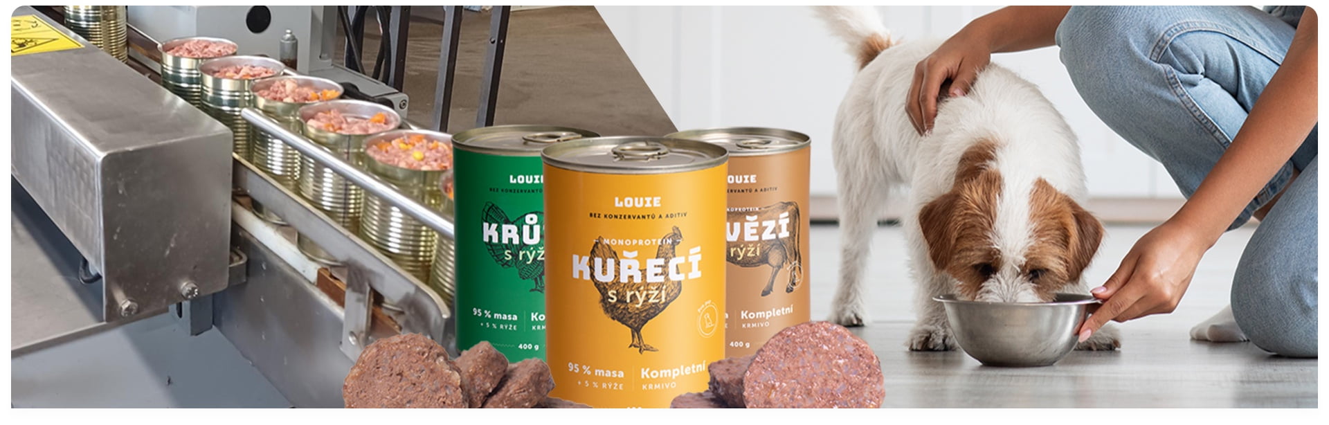 Na to u nás zabudni! My ti dávame labu na to, že u Louieho konzervy vyrábame od A do Z my sami! Len preto tí sme schopní dať 95 % mäsa v pevnej zložke prevažne potravinárskej kvality už spracovanej, trvanlivej v plechovke, ktorú môžeš hneď otvoriť a použiť za ceny porovnateľné alebo nižšie ako za koľko by vyšlo mäso surové nespracované.